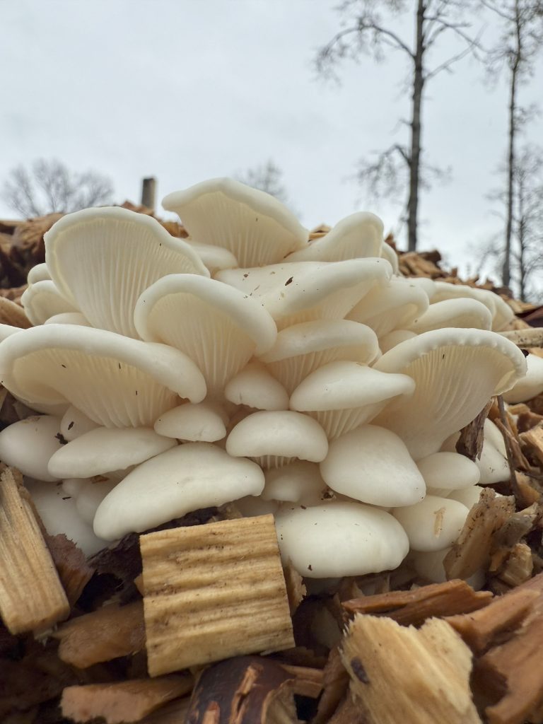 Coldfire leverages the natural systems that the forest uses to recycle biomass- fungal decay. We collect primary saprophytes (wood rotters) and train them to recognize the materials we call waste as a food source. Whereas a wood rotting mushroom would immediately accept a fallen log as a food source, piles of wood chips are different enough to delay their rapid adaptation. Returning a fungus to the wild is akin to throwing a babe to the wolves. There are bacteria hungry for its flesh, other fungi interested in the same food source, or the target mushroom itself. Through over a decade of study we have developed protocols that reduce the risk of contamination post inoculation. Our initial goal was to find a way to kick start and accelerate a natural process. And test after test has confirmed this.